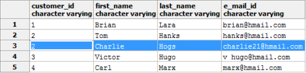 SELECT * FROM customers WHERE ctid NOT IN (SELECT max(ctid) FROM customers GROUP BY customer_id);