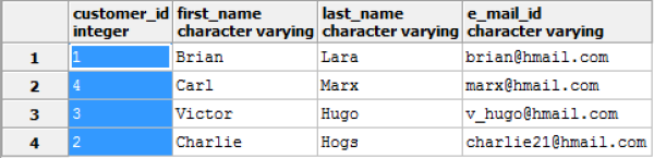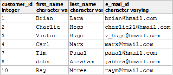 SELECT * FROM customers WHERE ctid NOT IN (SELECT max(ctid) FROM customers GROUP BY customer_id);